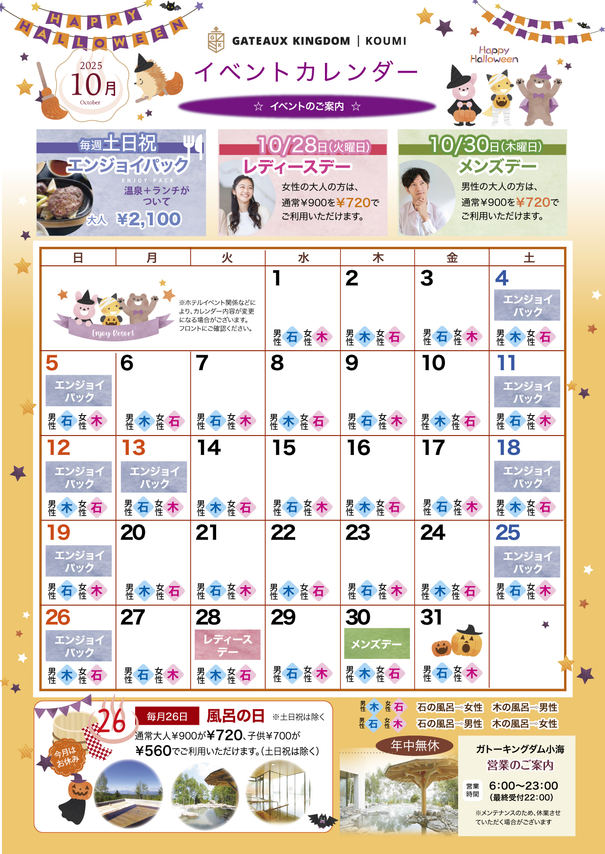 ※ご宿泊のお客様は、チェックインからチェックアウトの間、無料で何度でもご利用いただけます。